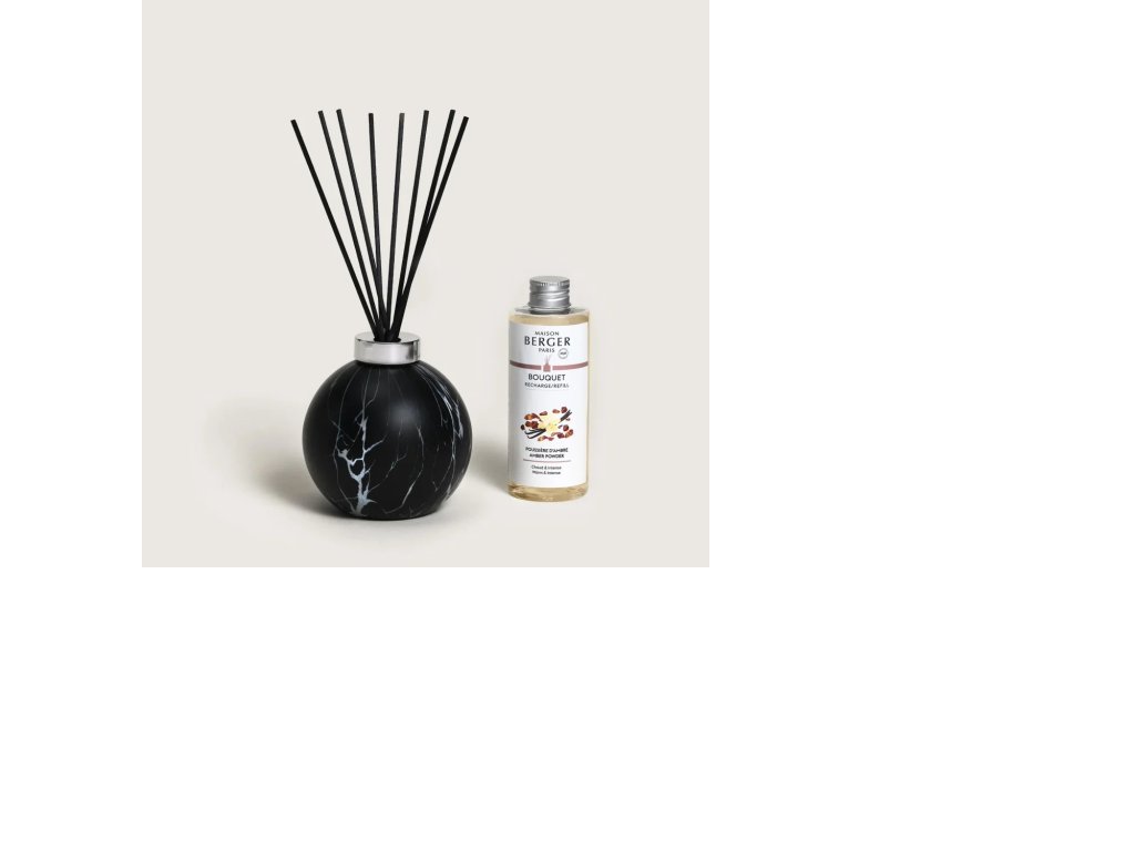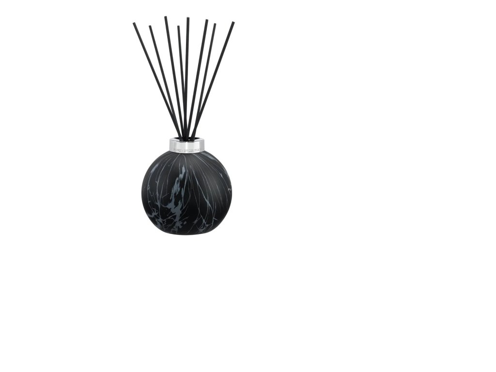 Luxusný tyčinkový difuzér Marbure bol navrhnutý v jednoduchom guľatom tvare a príťažlivom designe čierneho mramoru. Pomocou vonných tyčiniek a interiérovej vône tyčinkový aróma difúzer jemne parfumuje interiér po dobu 4 až 6 týždňov. V kombinácii s lesklou striebornou ozdobou na hrdle a bielo-sivým žilkovaným povrchom na prvý pohľad elegantne a sofistikovane.