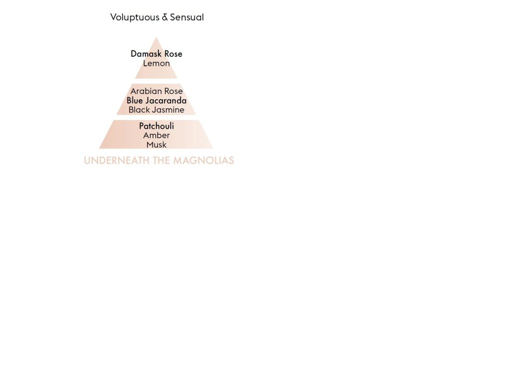Kvetinová dámska vôňa plná zmyselnosti vás očarí vo vysokých tónoch intenzívnej vône bulharskej a arabskej ruže, ktorej prirodzenú sviežosť podčiarkujú citrusové tóny. V srdci parfumu pulzuje rafinovaná stopa čierneho jazmínu miešajúca sa s jemnosťou modrej žakarandy. Kvetinovú kompozíciu uzatvárajú drevité akordy pačuli zahalené hrejivými tónmi ambry a pižma.